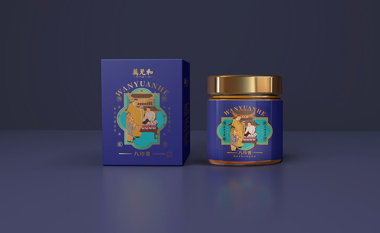 Introduction:萬元和八珍膏,百年傳承,歷史悠久。自清光緒年間創(chuàng)立以來,一直致力于傳承和發(fā)揚中華傳統(tǒng)食養(yǎng)文化。通過包裝設(shè)計展現(xiàn)了品牌的歷史底蘊和文化內(nèi)涵。
